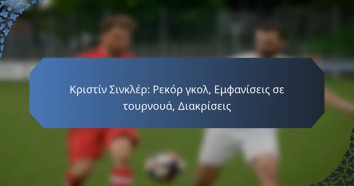 Η Κριστίν Σινκλέρ είναι μια θρυλική μορφή στο γυναικείο ποδόσφαιρο, γνωστή για την εξαιρετική της ικανότητα στο σκοράρισμα, με πάνω από 190 γκολ στο ενεργητικό της. Οι εντυπωσιακές της εμφανίσεις σε μεγάλες διοργανώσεις, συμπεριλαμβανομένου του Παγκοσμίου Κυπέλλου FIFA και των Ολυμπιακών Αγώνων, έχουν εδραιώσει την κληρονομιά της ως μία από τις μεγαλύτερες παίκτριες στην ιστορία του αθλήματος. Καθ’ όλη τη διάρκεια της καριέρας της, η Σινκλέρ έχει κερδίσει πολυάριθμες διακρίσεις, που αντικατοπτρίζουν τη σημαντική της συμβολή στο παιχνίδι και τη θέση της ως μία από τις πιο διακεκριμένες παίκτριες στην ιστορία.