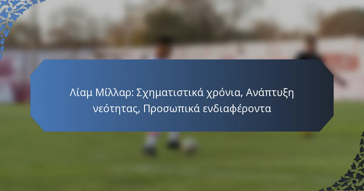 Η καριέρα του Liam Millar στη νεότητα χαρακτηρίζεται από σημαντικά επιτεύγματα και μεταβάσεις που έθεσαν τα θεμέλια για το επαγγελματικό του ταξίδι. Οι πρώιμες συσχετίσεις του με συλλόγους, οι επισημάνσεις εκπαίδευσης και οι επιδραστικοί προπονητές έπαιξαν καθοριστικούς ρόλους στην ανάπτυξή του ως ποδοσφαιριστή.