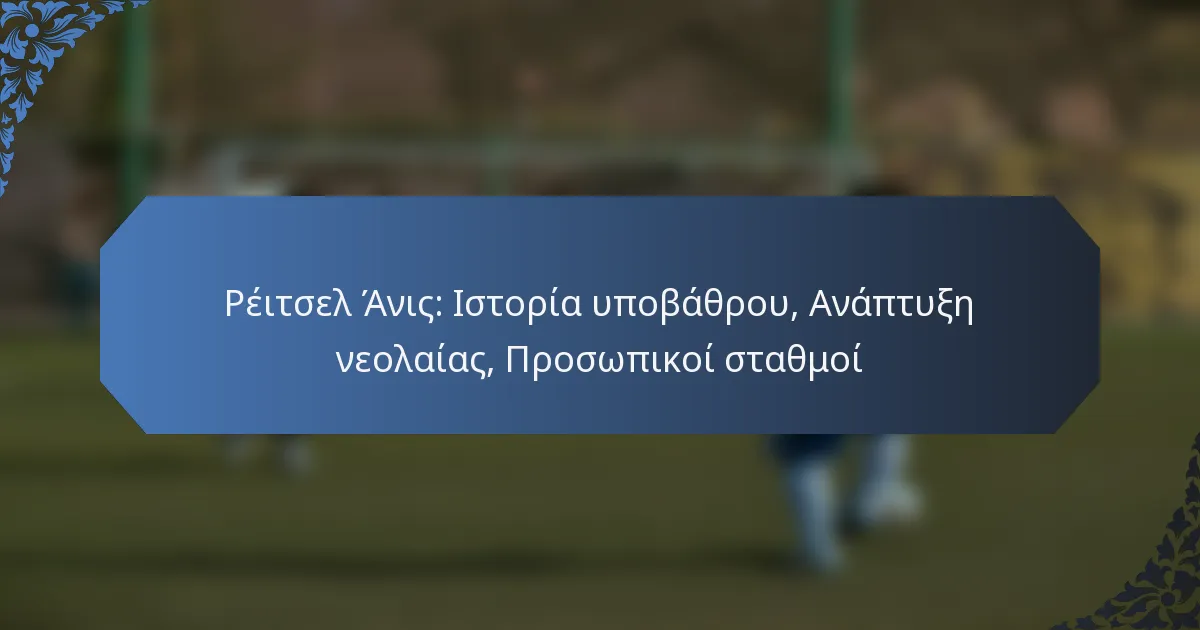 Η Ρέιτσελ Άνις βίωσε σημαντική ανάπτυξη κατά τη διάρκεια της νεότητας της μέσω ενός συνδυασμού συμμετοχής σε αθλήματα, ακαδημαϊκών επιτευγμάτων και κοινοτικής εμπλοκής. Το ταξίδι της χαρακτηρίστηκε από την υπέρβαση προκλήσεων και την επιρροή σημαντικών καθοδηγητών, διαμορφώνοντας τον χαρακτήρα και τις αξίες της.